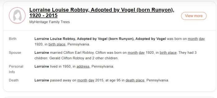 Lorraine Runyon (Robtoy) - Class Of 1939
